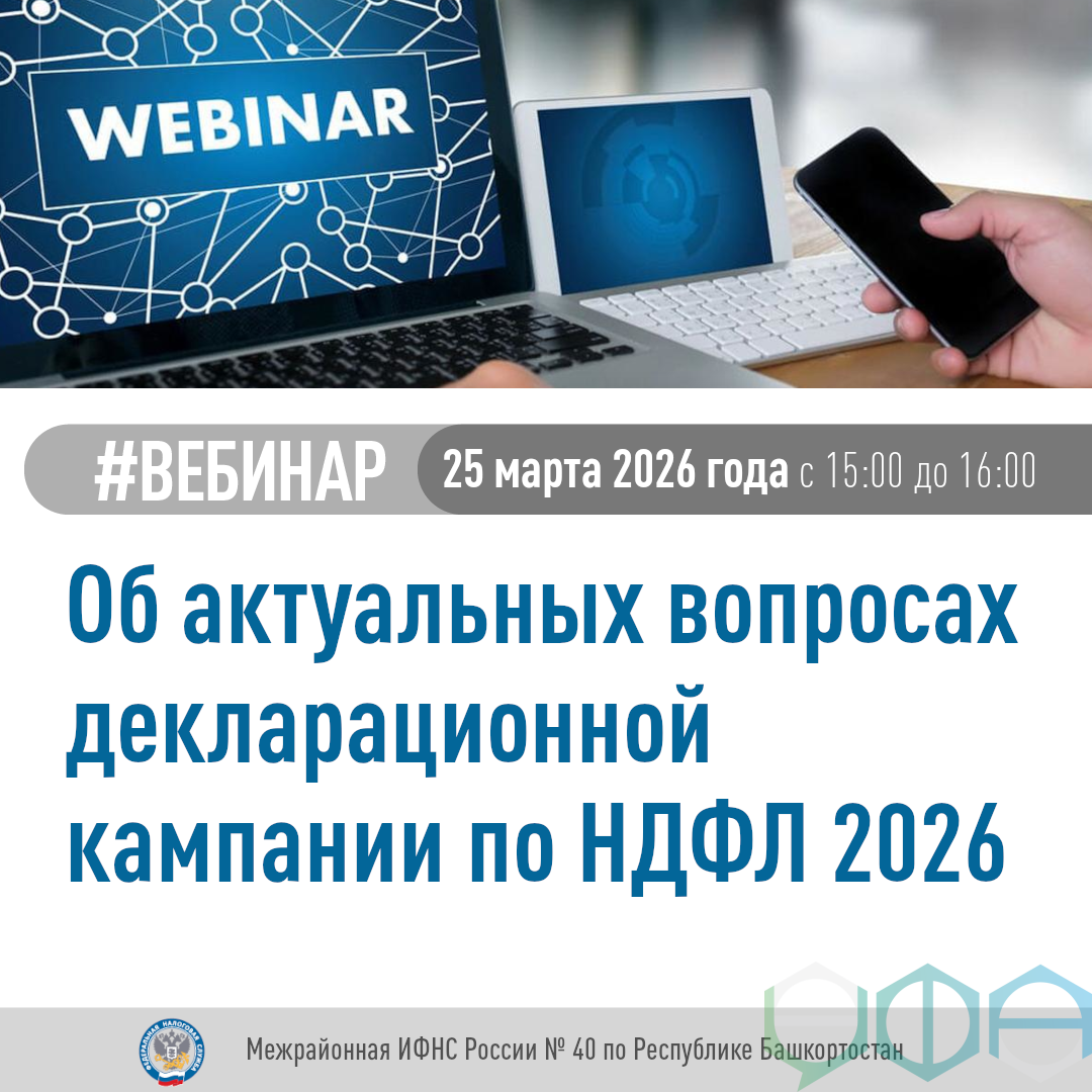 Межрайонная ИФНС России № 40 по Республике Башкортостан проведет вебинар для налогоплательщиков. Мероприятие состоится 25 марта 2026 года в 15:00.